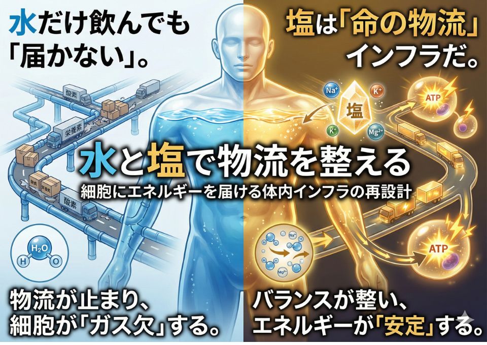 水と塩で物流を整える|細胞にエネルギーを届ける体内インフラの再設計